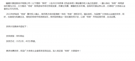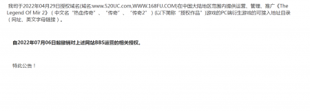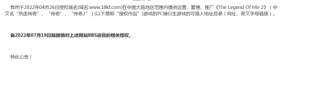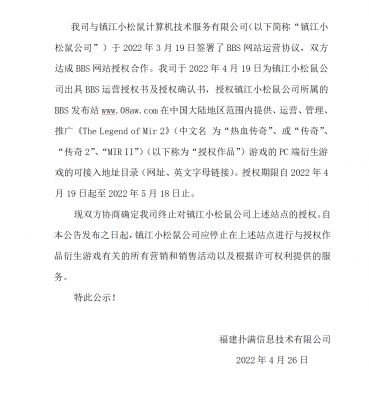 202204-26世界杯下单官方网站信息技术有限公司(以下简称“我司”)自2021年获得《热血传奇》原始著作权人独占性授权,一直...