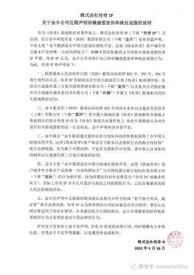 202207-05金丰集团并无《传奇》游戏授权权限发多篇声明攻击娱美德 近日,金丰科技信息(深圳)集团有限公司(以下简称“金丰”)发...